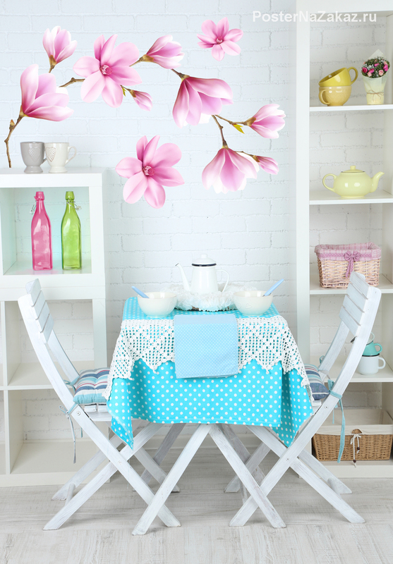 Розовая веточка Магнолии украсит любую комнату в светлых тонах.Придаст нежность в интерьере.Приятные розовые оттенки будут радовать глаз и поднимать настроение
