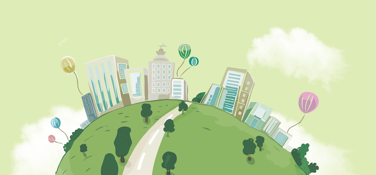 Мультяшные нарисованные яркие домики на горке, подойдут для любой детской комнаты как для мальчика так и для девочки.Яркая иллюстрация будет радовать малышей.