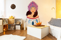 Красочное, яркое изображение женского портрета добавит колорит, стиль и смелость помещению. Данная наклейка подойдет для любой комнаты. Лучше располагать на светлых стенах, тем самым придавая комнате сочный акцент.