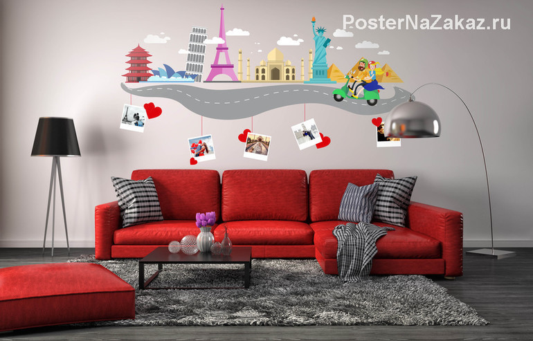 Любите путешествовать со своей второй половинкой? Тогда эта наклейка прекрасно подойдет для вашей комнаты! Вы сможете поместить на ней самые яркие моменты вашего путешествия.