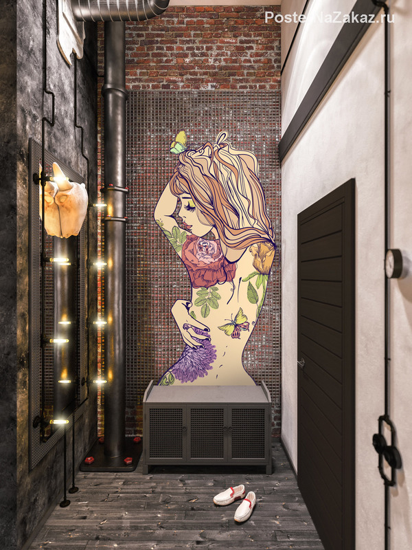 Изображение в интерьере Девушки с татуировкой на спине прекрасно подойдет для мужской аудитории. Каждое день она будет радовать взгляд любого мужчины или подростка.