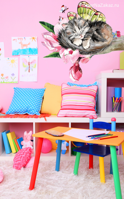 Сонный Котенок, очень милая и нежная наклейка для детской комнаты.Невероятную нежность и ласку передает такая наклейка.