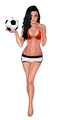 Для Любителей просмотра футбольных матчей, футбола как вида спорта, будет актуальна такая симпатичная девушка с мячем в комнате.
