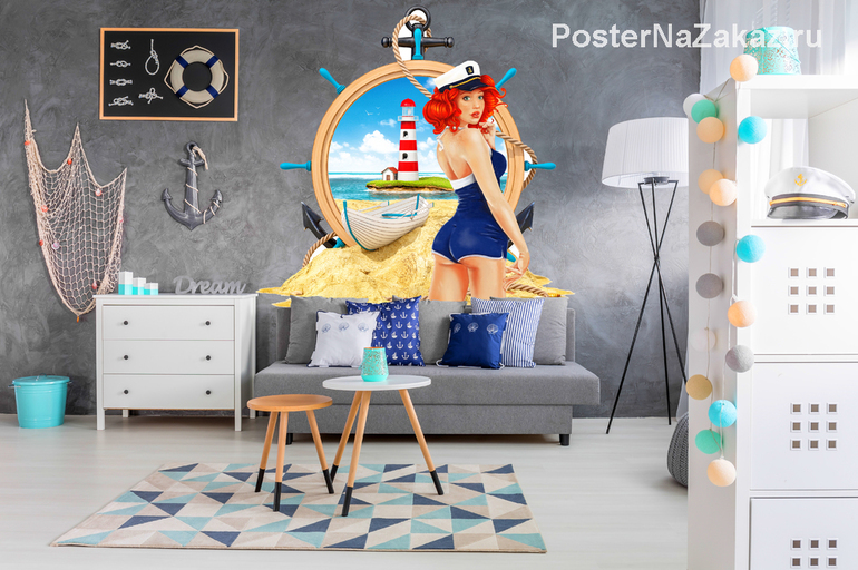 Симпатичная, яркая девушка Морячка, украсит любую комнату, с акцентом на морской стиль.Интересно будет смотреться как в мужской комнате, так и в гостиной и ванной.