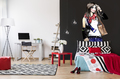 Симпатичная, обаятельная, модная, романтичная девушка в виде наклейки, подойдет для любой подростковой комнаты.