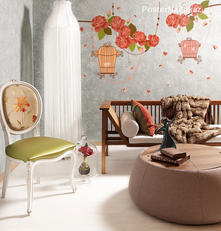 Наклейка в виде веточек Роскошных цветков розы, ажурных клеток и птичек дополнит ваш интерьер и привнесет неповторимый элемент дизайна.