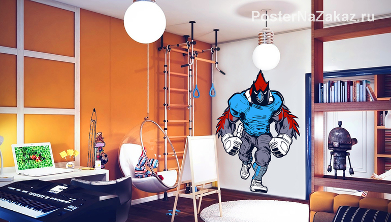 Серьезный накачанный Цыпленок, отлично подойдет для любой детской и подростковой комнаты. Мультяшный Герой, отличное дополнение к интерьеру комнаты