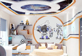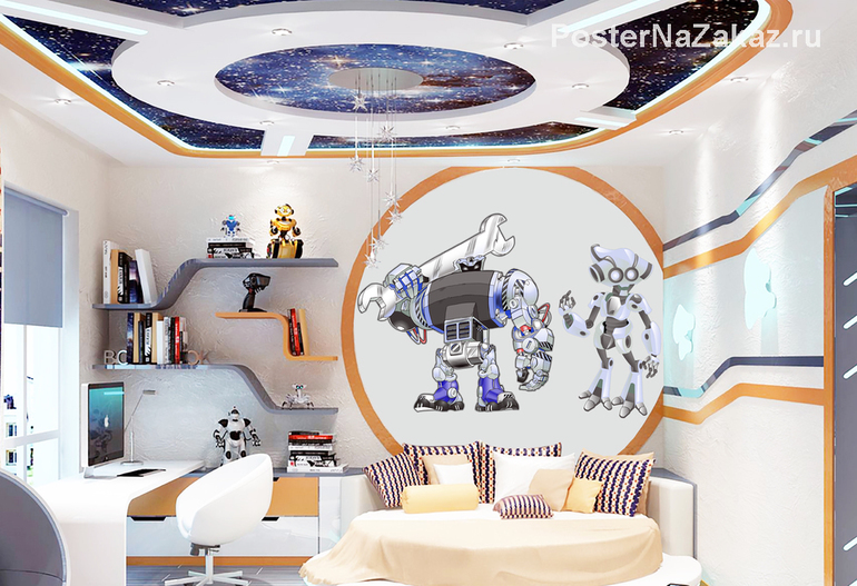 Серьезные роботы - наклейка, для любителей космических приключений и фантастики.Подойдут для любой детской космической комнаты