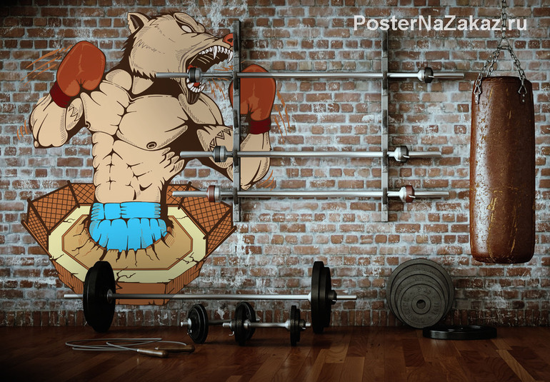 Наклейка в виде Волка боксера с перчатками и рингом прекрасно подойдет для комнаты для занятий спортом.