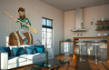 Наклейка в виде забавного Хипстера на бочке с веслом в руках будет отлично смотреться на кухне молодого парня.