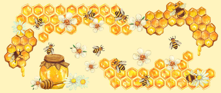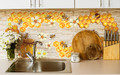 Изображение в интерьере симпатичных пчелок с медовыми сотами и цветочками привнесет элемент теплоты и уюта на вашей кухне.