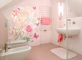 Наклейка в виде букета красивых распустившихся цветов с разноцветными яркими бабочками украсит и привнесет элемент нежности в вашу ванную.