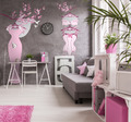 Наклейка в виде ажурных вешалок с изысканным платьем и нижним бельем висящие на веточках сакуры будет отлично смотреться в комнате подростка.