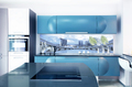 Наклейка на кухонный фартук, в виде панорамы города, стильно будет смотреться в любом интерьере кухни.