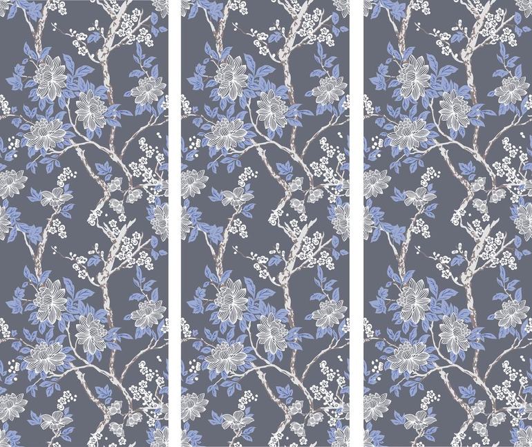 Наклейка на холодильник в виде цветочного принта, в приятных синих оттенках, прекрасно дополнит интерьер кухни и украсит ваш холодильник
