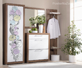 Наклейка в виде нежных роз в пастельных оттенках с листочками и узорами прекрасно подойдет для шкафа в прихожей.
