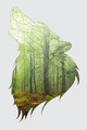 Наклейка в виде головы волка, воющего на луну, с лесным фоном и орнаментом по силуэту, будет отлично смотреться в вашей прихожей.