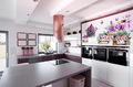 Изображение акварельных ящиков с цветами придадут стиль и изюминку помещению. Яркие цвета разбавят спокойный интерьер и дополнят существующий дизайн. Лучше располагать на светлых кухонных ящичках. Прекрасно подойдет как для кухонь в современном стиле, так и стиле Прованс.