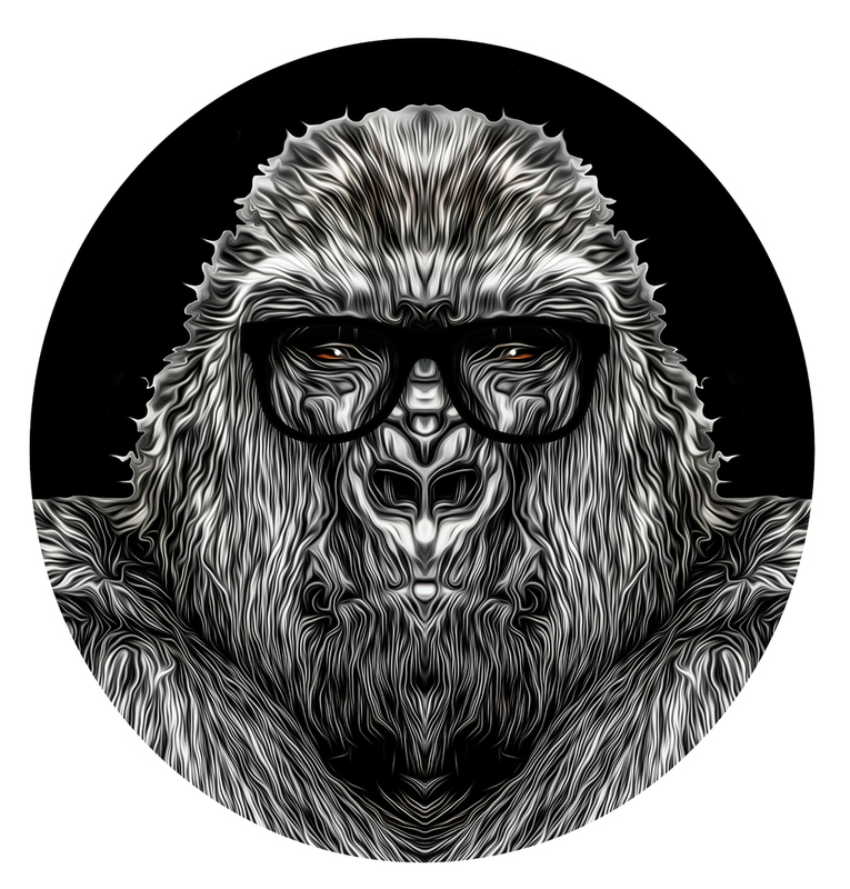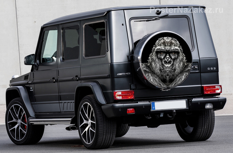 Наклейка на колесо брутальная шимпанзе, интересное и оригинальное дополнение к вашей машине. Подойдет для больших джипов