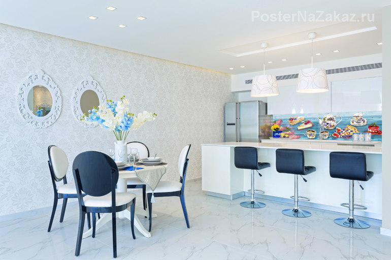 Кухонный фартук выполненный в акварельной технике никого не оставит равнодушным. Яркие десерты подзадорят хозяйку на новые свершения в кулинарии. Наклейка будет ярким сочным акцентом вашей кухни.