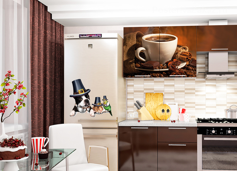 Наклейка на холодильник в виде домашних любимцев, будет радовать вас каждый день, и каждый час.Подойдет для любого интерьера кухни.