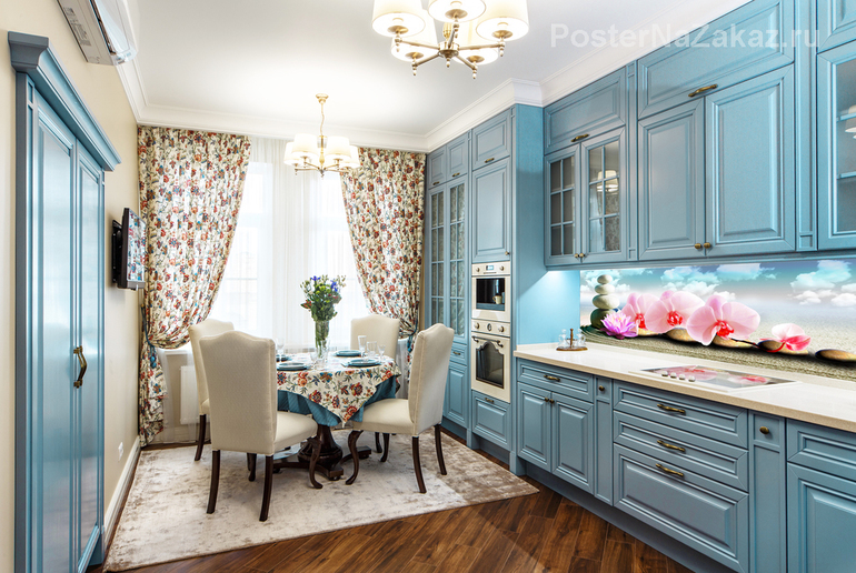 Изображение веточки нежных орхидей прекрасно подойдет для кухонного фартука, придаст интерьеру интересный акцент. Подойдет для классического и восточного стиля вашей кухни.