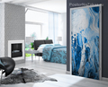 Наклейка с изображением разлитых акварельных красок в синих оттенках прекрасно подойдет для двери в вашей спальне.