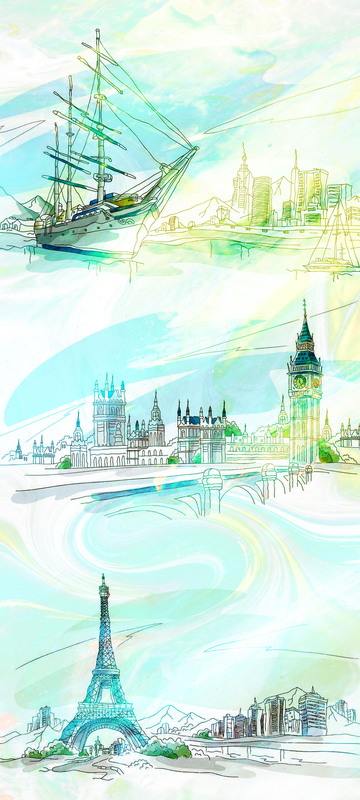 Наклейка на дверь с изображением нескольких достопримечательностей и отличительных черт столиц мира будет отлично смотреться в гостиной.