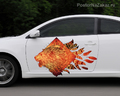 Наклейка в виде головы льва, ромба и декоративных перьев в яркой цветовой гамме будет отлично смотреться на вашем авто.