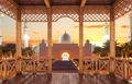 Наклейка на шкаф купе в виде терассы с видом на прекрасный восточный город Абу Даби Арабские Эмираты, прекрасное дополнение к вашему интерьеру.