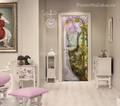 Наклейка на дверь с изображением арки с колоннами и ступеньками ведущими в японский сад украсит любую комнату.