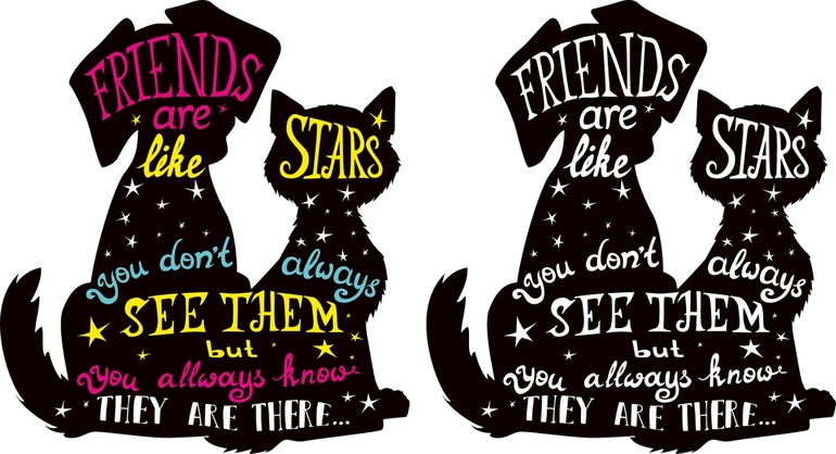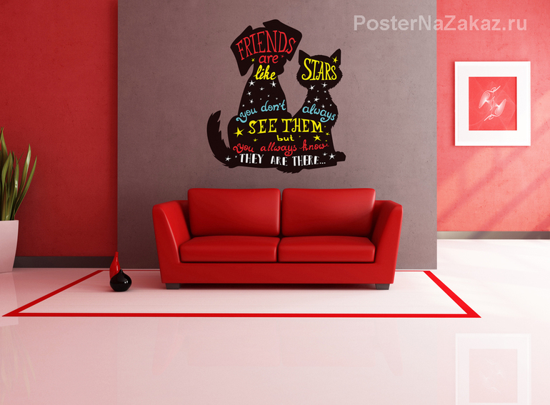 Яркая современная наклейка с прикольной фразой оживит ваш интерьер и добавит ему игривости. Кот и пес будут символом настоящей дружбы и гармонии.