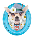 Наклейка на холодильник в виде милейшего песика в шляпке с ромашкой, оригинальное и забавное дополнение к оформлению Вашего холодильника