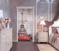 Наклейка с изображением Эйфелевой башни, красного ретро автомобиля на фоне цветов, станет украшением любой комнаты.