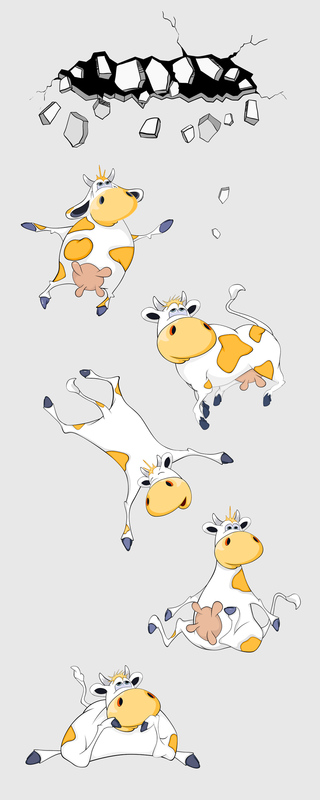 Наклейка в виде смешных коровок, с иллюзией падения из разлома в стене, станет главным украшением вашего холодильника.