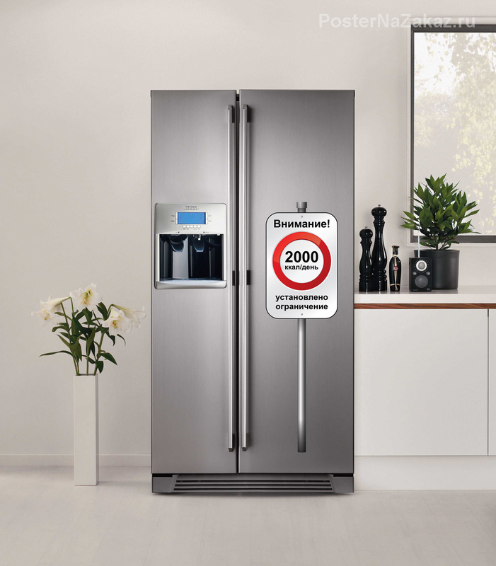 Внимание! На территории кухни, при открытии холодильника, установлено ограничение потребления каллорий! Будьте бдительны и не тянитесь к вкусняшкам! Напоминание для тех, кто любит правильно питаться, сидит на диете, или просто для людей с чувством юмора.