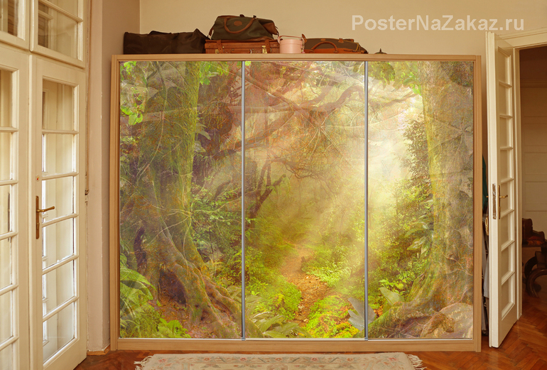 Наклейка на шкаф купе с изображением лесных простором и тропинки в волшебный лес, прекрасное дополнение к оформлению вашей комнаты