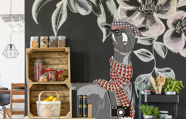 Наклейка на стену, в виде стильное овечки в шляпе и шарфе, с фотоаппаратом, интересное дополнение к оформлению Вашей комнаты