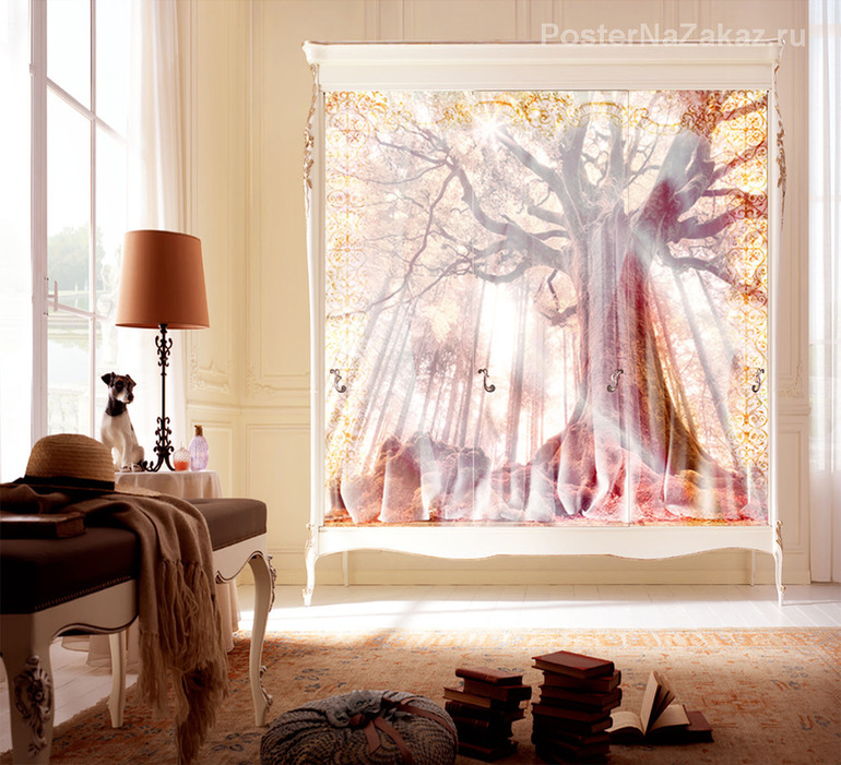 Наклейка с изображением розового дерева, нежные цвета будут отлично смотреться в вашей спальне. Придаст классический вид за счет текстуры штор.
