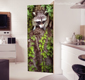 Наклейка с изображением милого симпатичного енота среди листьев дерева будет отлично смотреться в любой комнате.