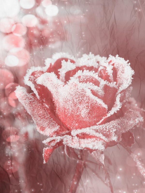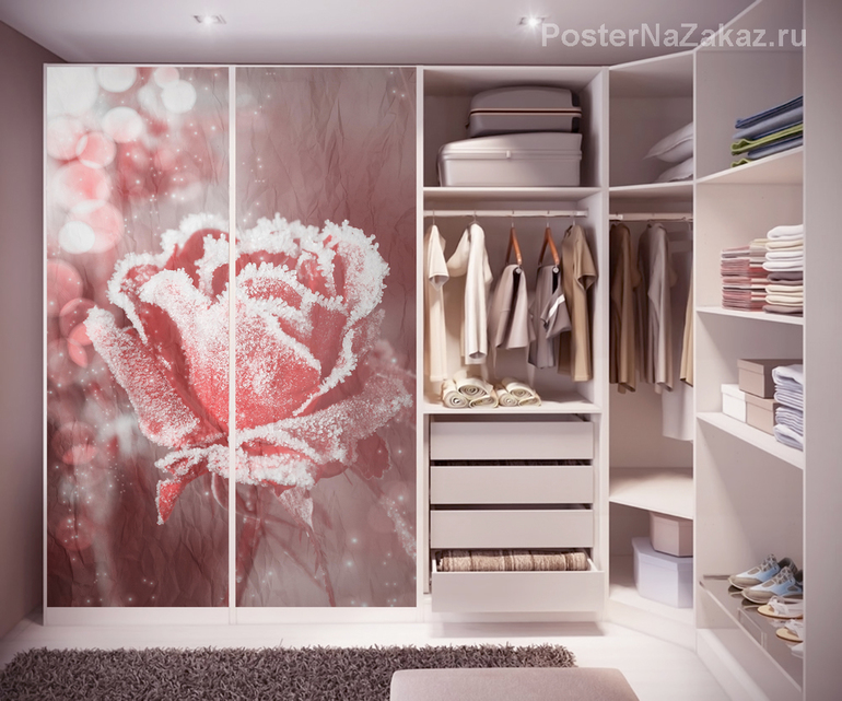 Наклейка с изображением прекрасной зимней красной розы с лучами солнца станет украшением любой комнаты.