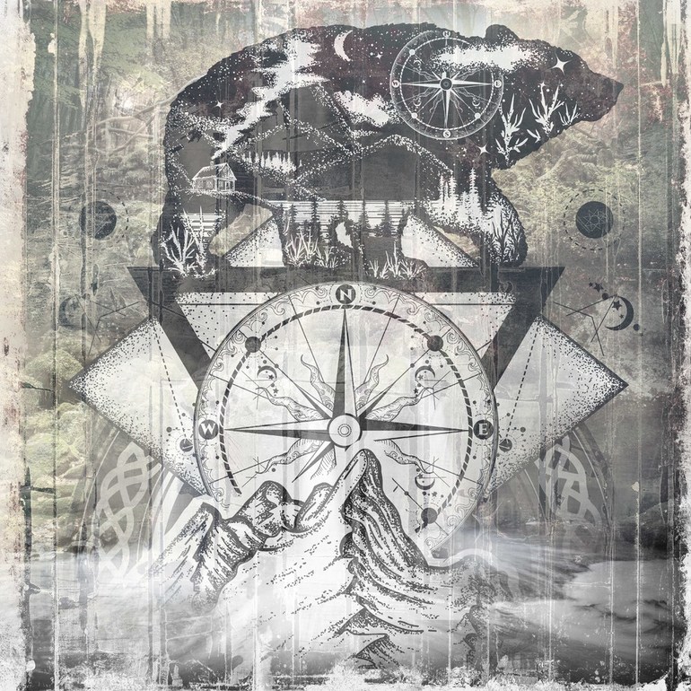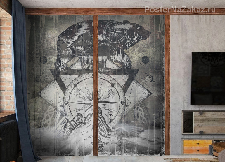 Наклейка с изображением талисмана с большим медведем и компасом на состаренном фоне будет отлично смотреться на вашем шкаф купе.