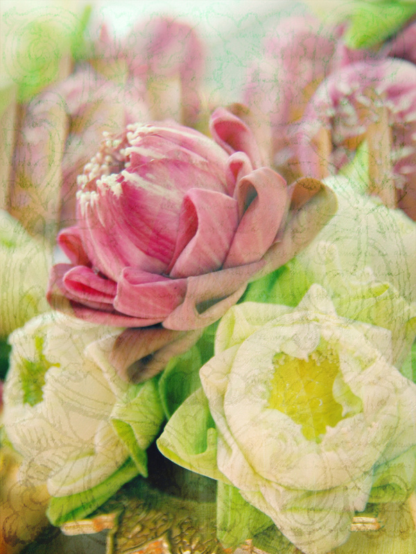 Изображение в интерьере букета лотосов со свернутыми лепестками будет отличным украшение вашего шкафа в любой комнате.
