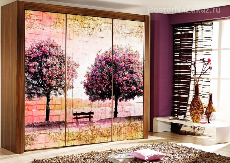 Наклейка с изображением двух розовых деревьев, будут отлично смотреться в вашей спальне или гостиной. Нежные цвета придадут мягкости, декоративные вензеля добавят классического вида.