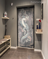 Наклейка с изображением рисунка китайского дракона в монохромном решение в ретро стиле украсит вашу прихожую.