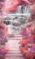 Наклейка с изображением цветущего сада с водопадом и деревьями в окружении цветов украсит вашу спальню.
