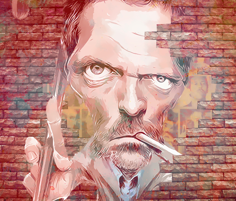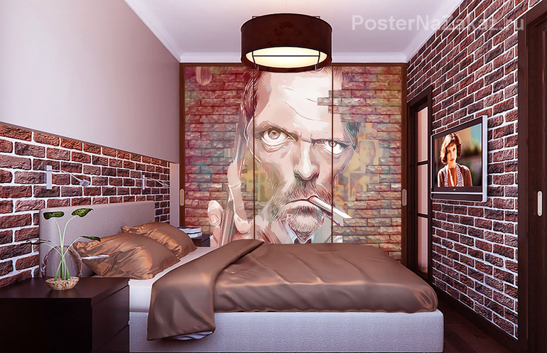 Наклейка на шкаф купе с изображением Доктора Хауса, отлично подойдет для любой комнаты как подростка так и взрослого любителя этого сериала