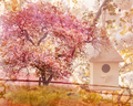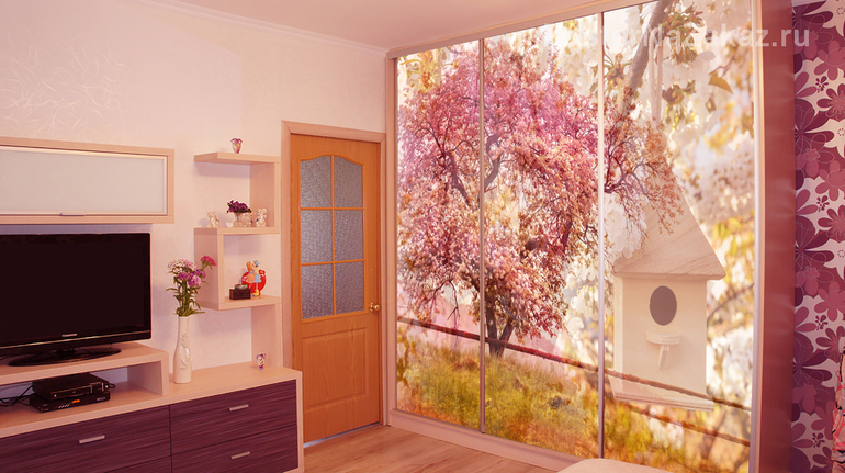 Наклейка на шкаф купе с изображением домика для птичек, на цветущей ветке, отличное дополнение к оформлению Вашей комнаты
