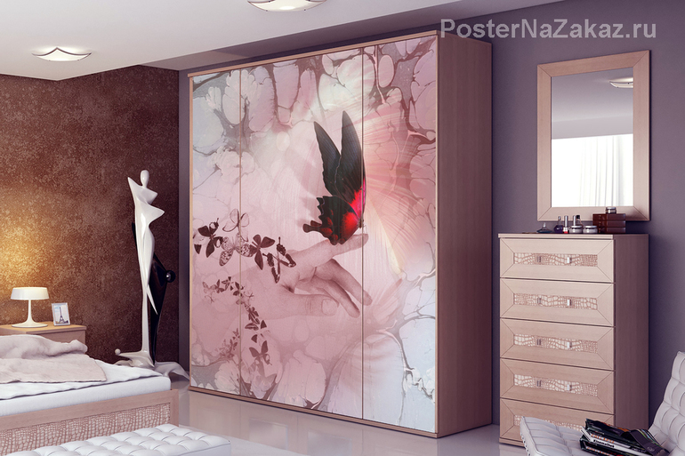 Наклейка на шкаф купе с изображением прекрасной бабочки на руке, отличное дополнение к оформлению вашей комнаты