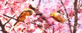 Наклейка с изображением милых птичек на веточках на фоне цветов будет отлично смотреться в вашей кухне.